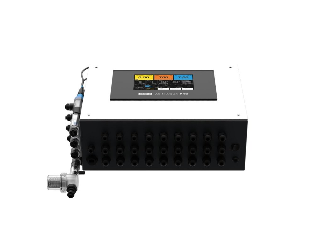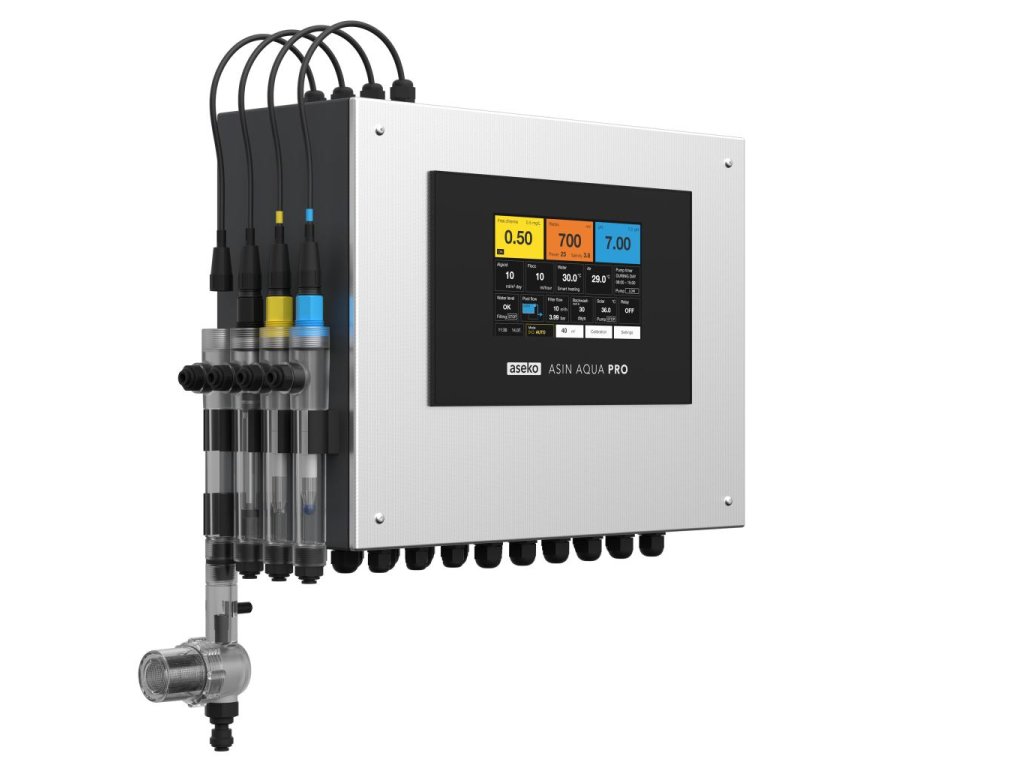 ASIN AQUA PRO CLT je profesionální automatická řídicí a dávkovací jednotka určená pro kompletní řízení kvality vody a technologie bazénu.