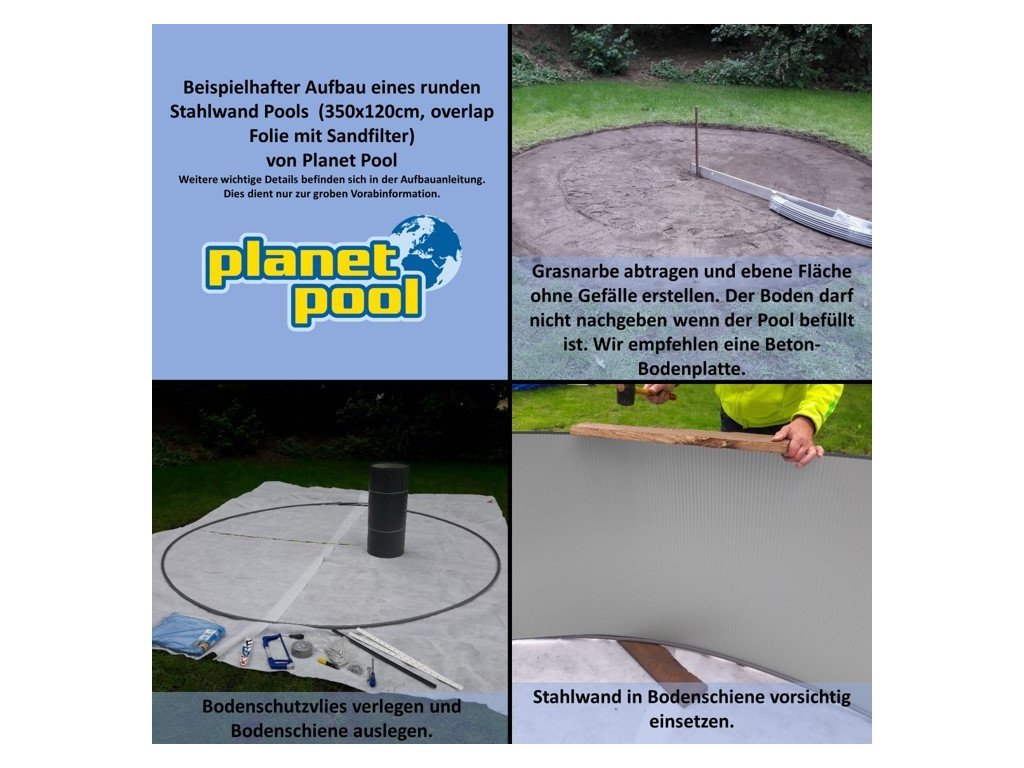 Bazén je vhodný pro instalaci na rovném podkladu s dostatečným odstupem od potenciálního spadu nečistot ze stromů a střech. UV stabilizace PVC folie zajišťuje je barevnou stálost a životnost. Tento bazén přestavuje osvědčenou koncepci bazénu a pozitivní historickou zkušenost.