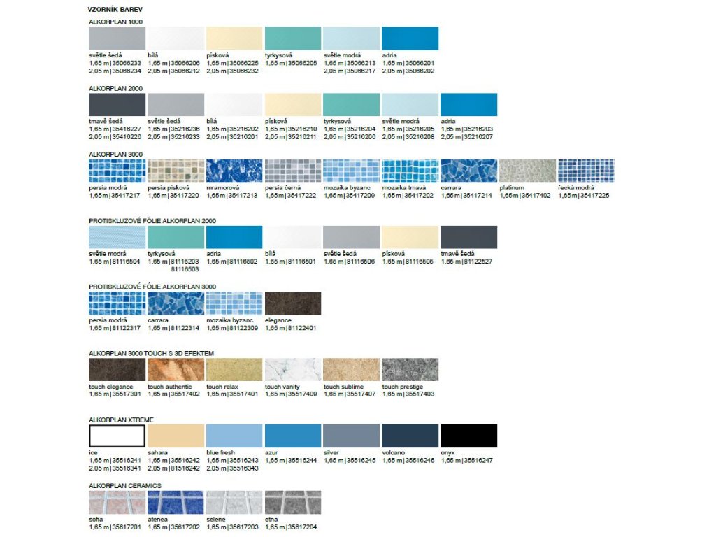 ALKORPLAN 2000 (35216) je bazénová fólie vyrobená z měkčeného PVC s výztužnou vložkou s PES tkaniny.