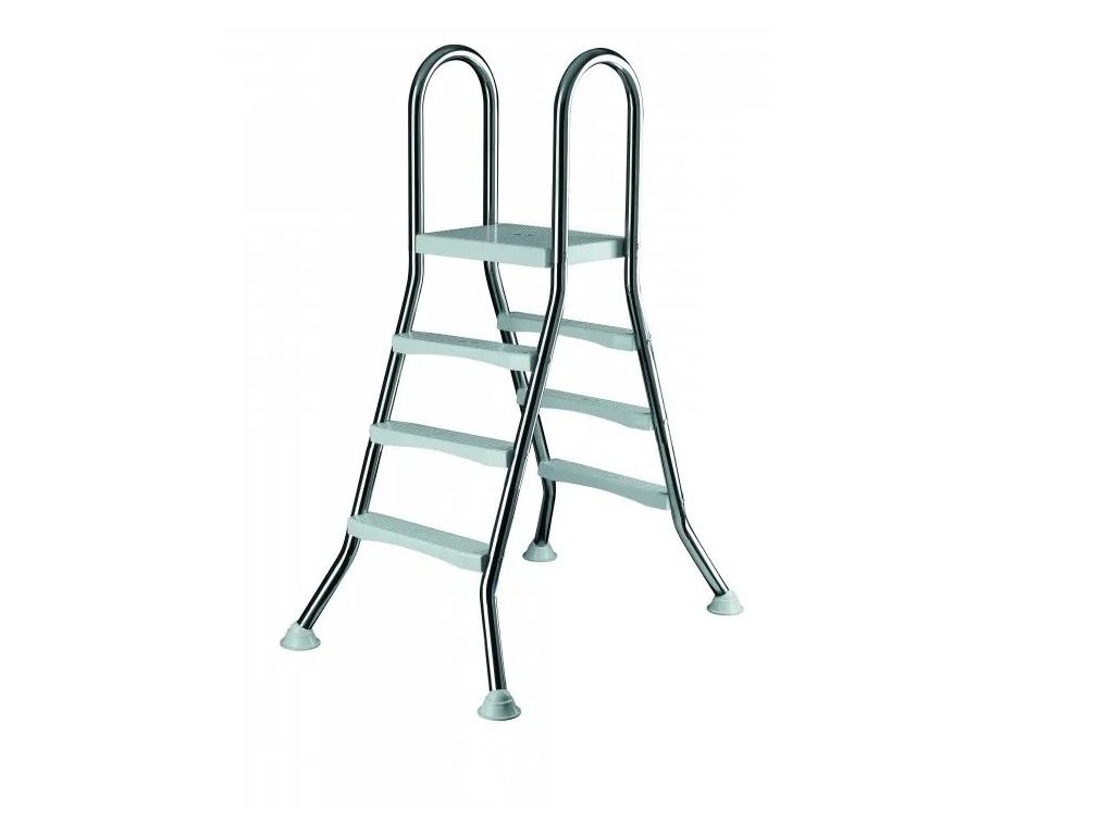 Bazénový žebřík pro bazény se stěnou až 90 cm, vyrobený z kvalitní nerezové oceli, která zajistí jeho dlouhou životnost. Žebřík má silné stabilní plastové schodnice a plošinu s protiskluzovou úpravou , udrží hmotnost až 150 kg. Žebřík má 3 stupně na vnitřní a vnější straně. Nohy žebříku jsou zakončeny koncovkami z protiskluzové gumy se stabilní podložkou, které zabraňují nechtěnému pohybu žebříku a zvyšují tak bezpečnost. Zároveň zabraňují poškození vašeho bazénu.