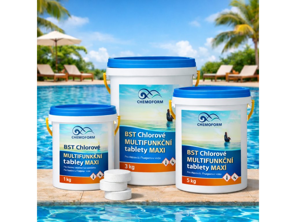 | Typ produktu | Multifunkční chlorové tablety do bazénu |