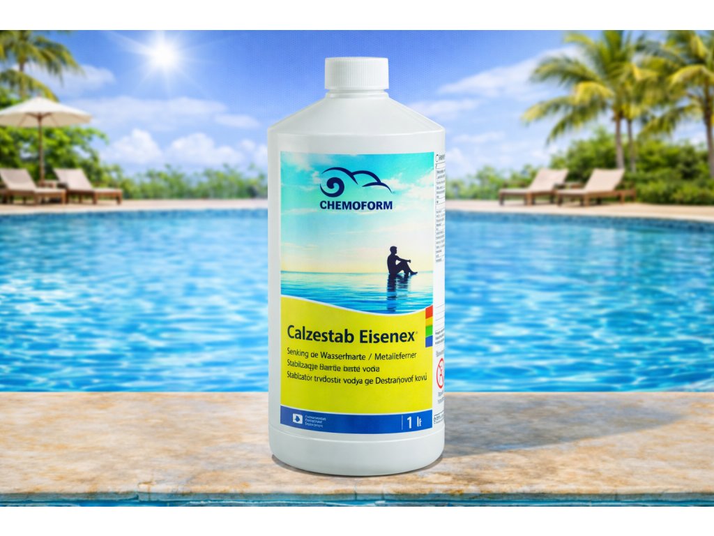 Calzestab Eisenex je speciální přípravek určený ke stabilizaci tvrdosti bazénové vody a k odstranění kovových iontů (zejména železa a manganu).