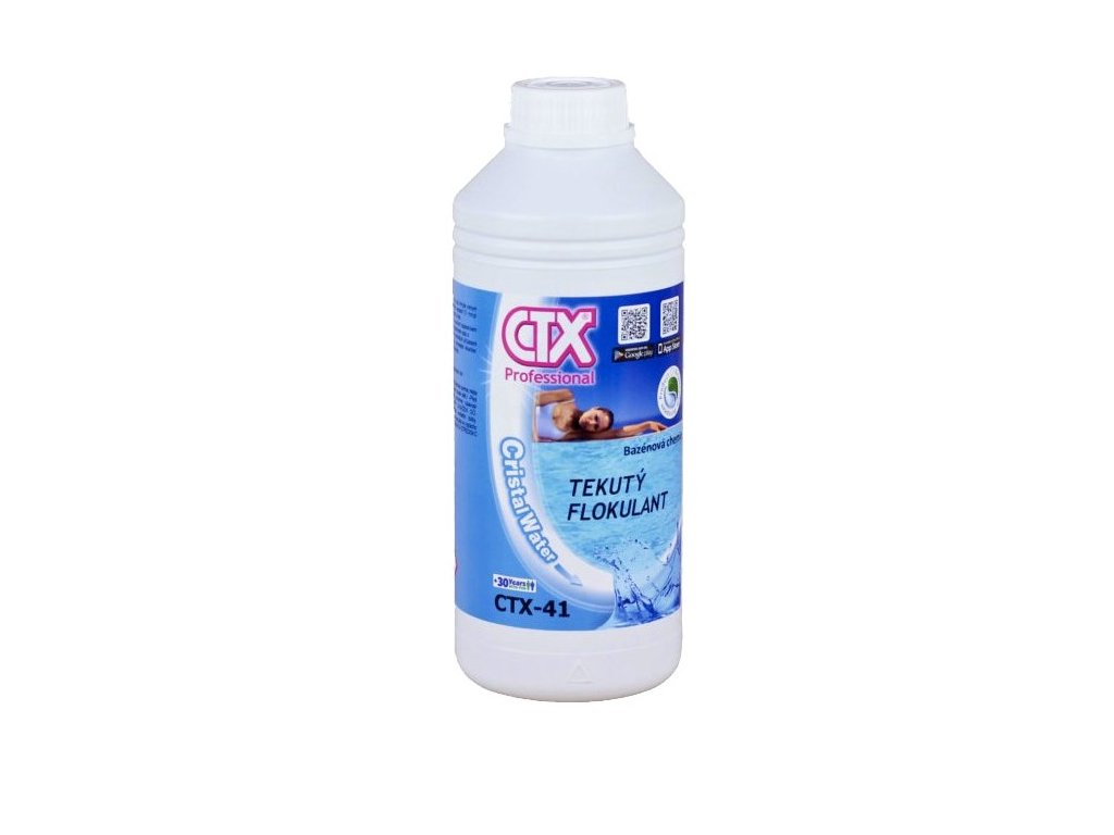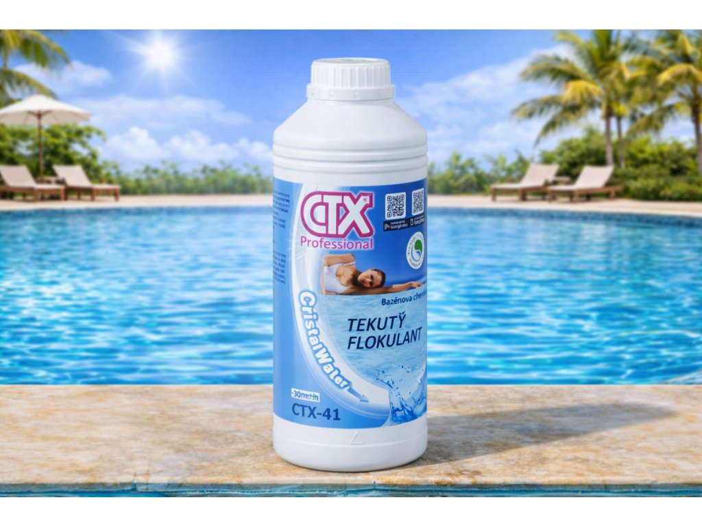 CTX 41 je vysoce účinný tekutý flokulant určený pro odstranění jemných nečistot a zákalu z bazénové vody.