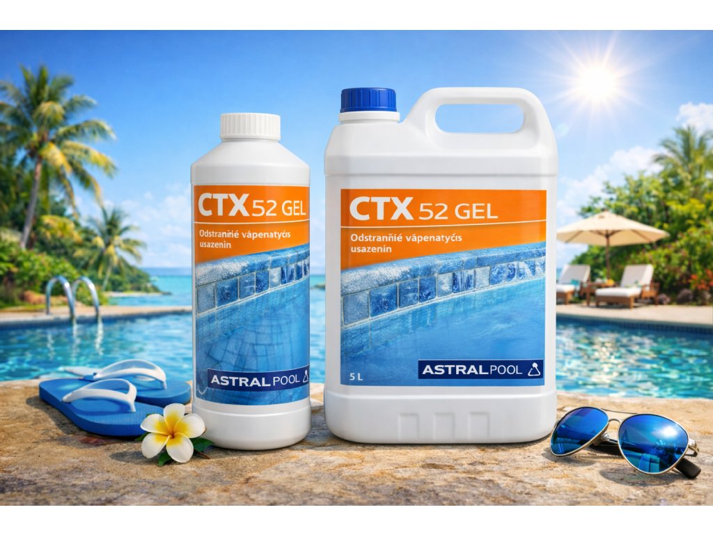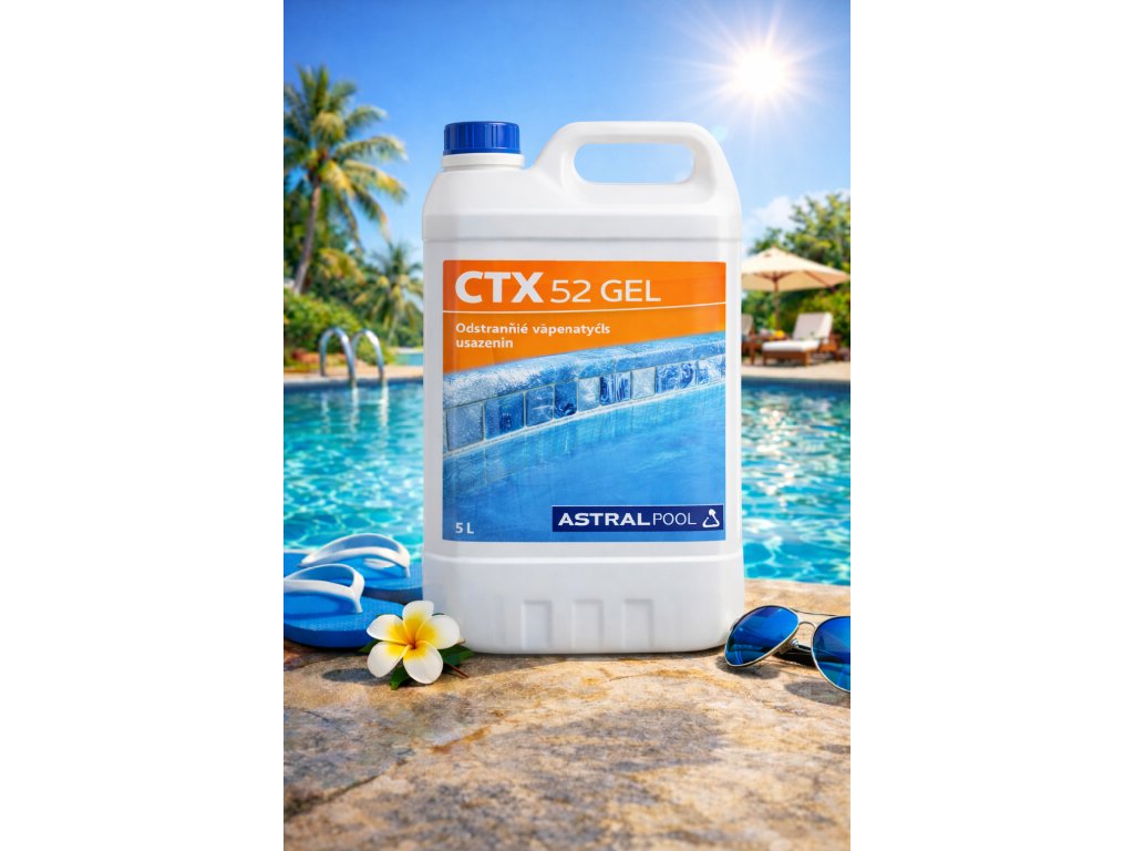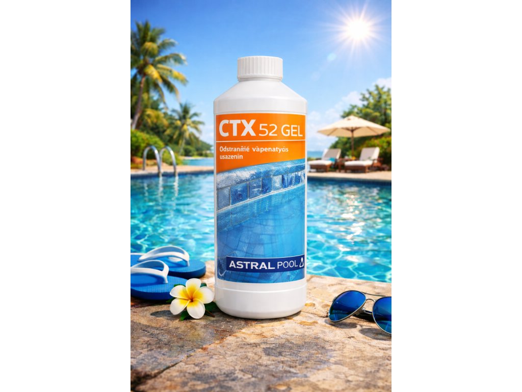 CTX 52 GEL je vysoce účinný gelový přípravek určený k odstranění vápenatých usazenin, vodního kamene a minerálních nánosů z bazénových povrchů.