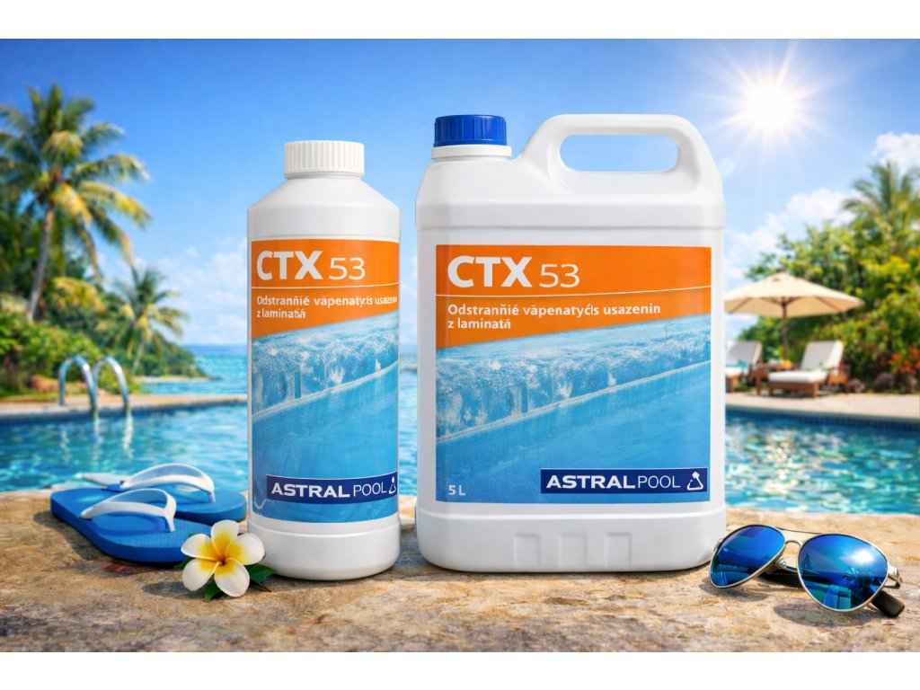 CTX 53 je specializovaný čisticí gel určený k bezpečnému a efektivnímu odstranění vápenatých usazenin, vodního kamene a minerálních map z laminátových povrchů bazénů.