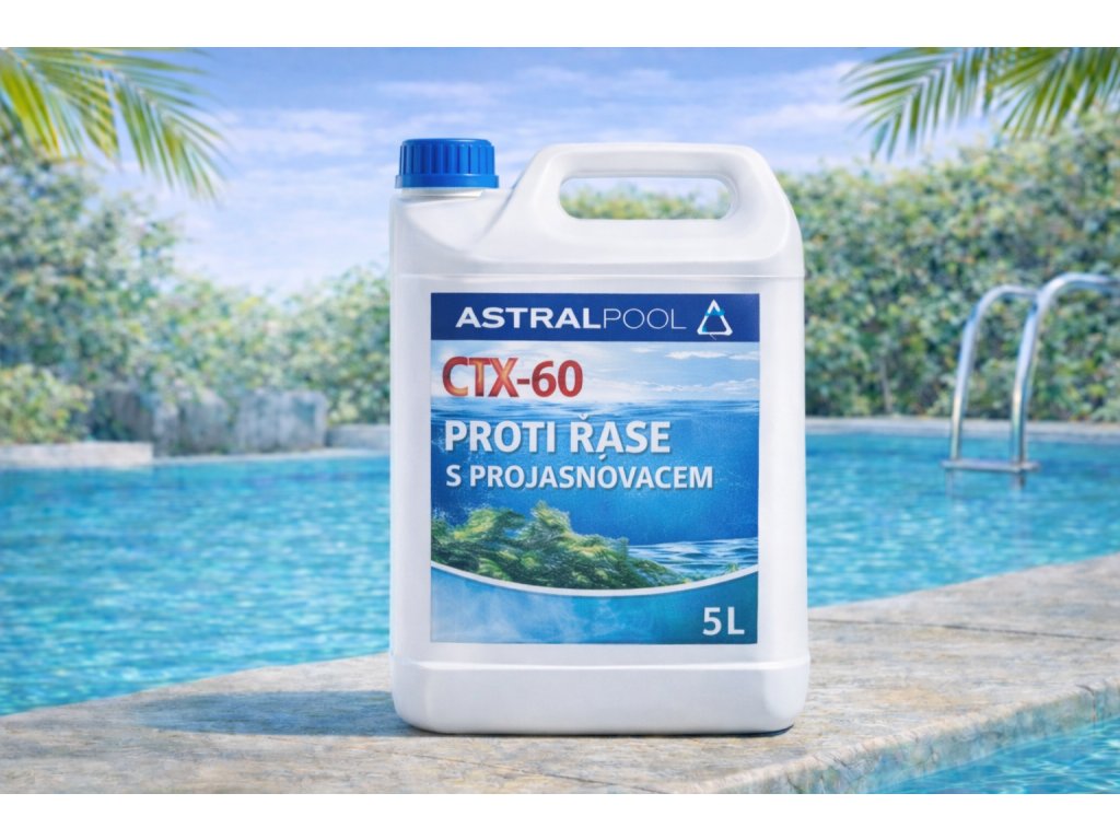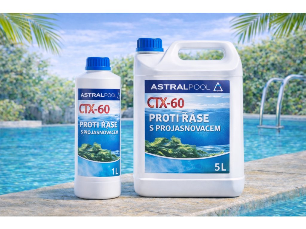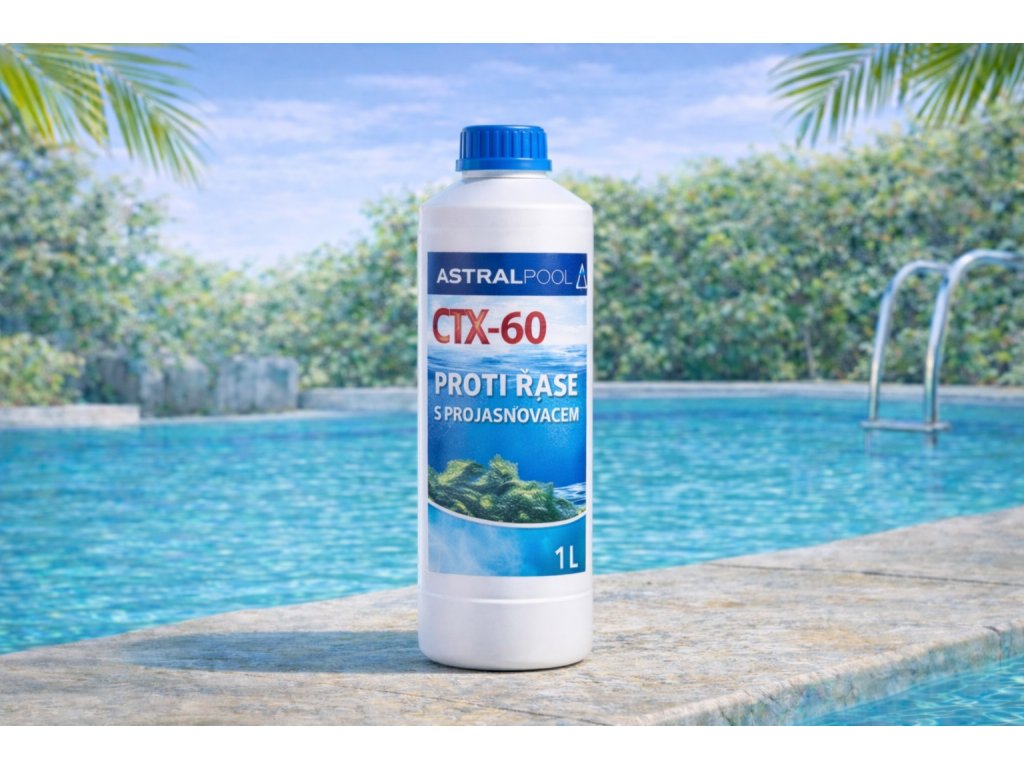 CTX 60 je tekutý biocidní přípravek pro bazény určený k likvidaci a prevenci řas, zároveň obsahuje projasňovací složku pro zlepšení čirosti vody.
