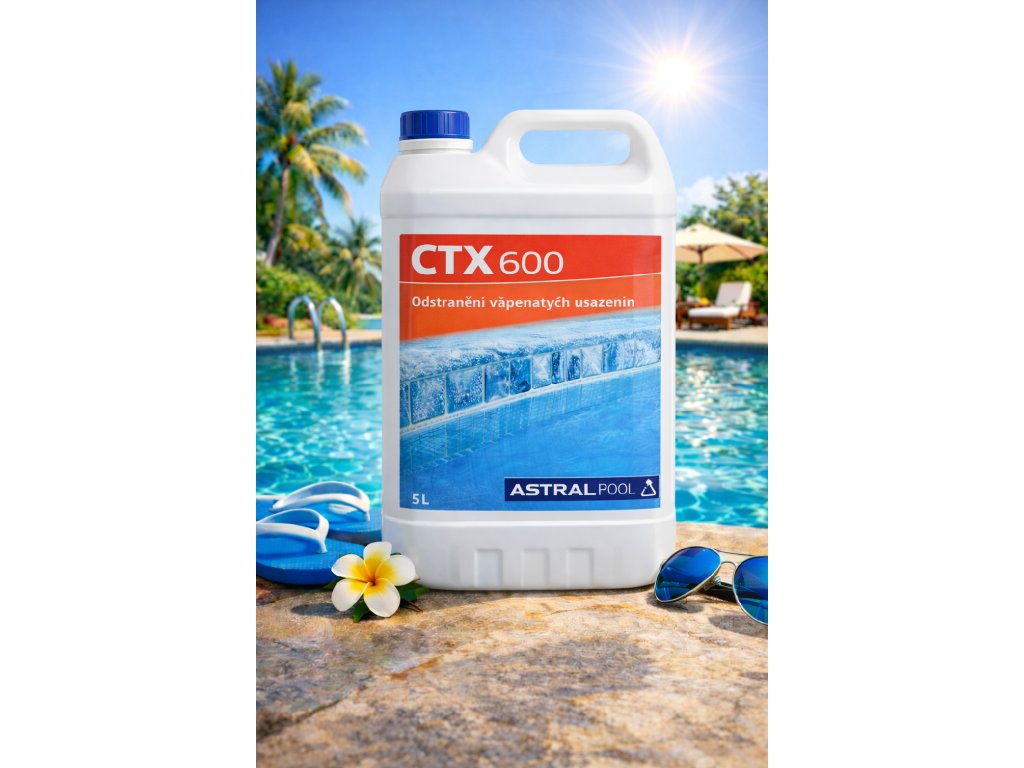 CTX 600 je silně účinný čisticí přípravek určený k odstranění vápenatých usazenin, vodního kamene a minerálních map z bazénových povrchů a zařízení.
