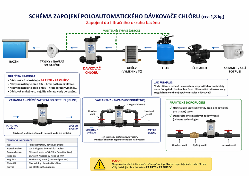 - typ: poloautomatický dávkovač tabletového chlóru