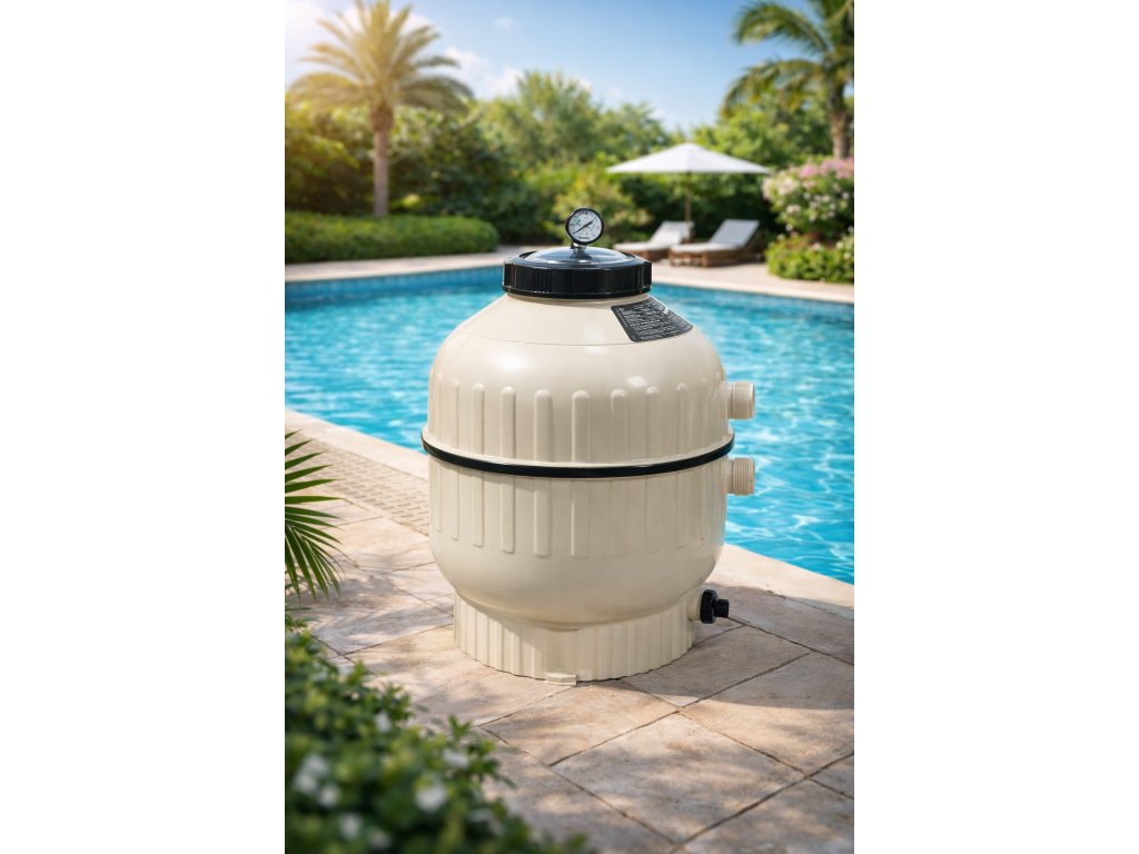 Cantabric D400 je plastový pískový filtr určený pro čištění bazénové vody v menších až středních rodinných bazénech.