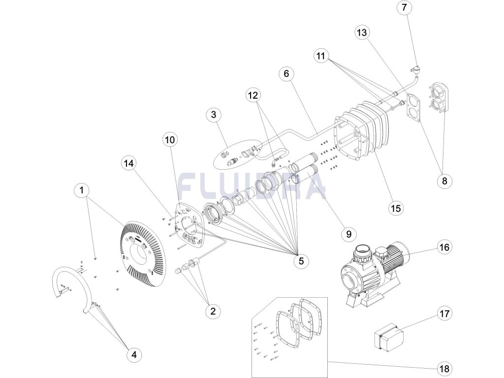 - přírubu s těsněními pro montáž ve fóliovém nebo prefabrikovaném bazénu