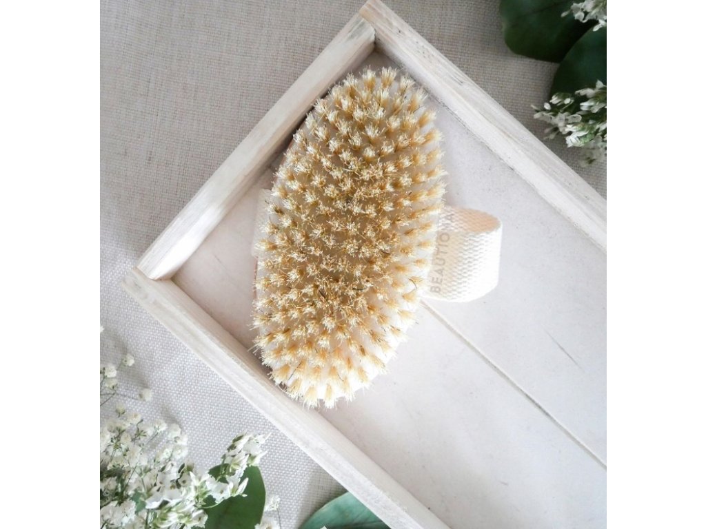 Přírodní masážní kartáč se skvěle hodí pro suchou i mokrou masáž.