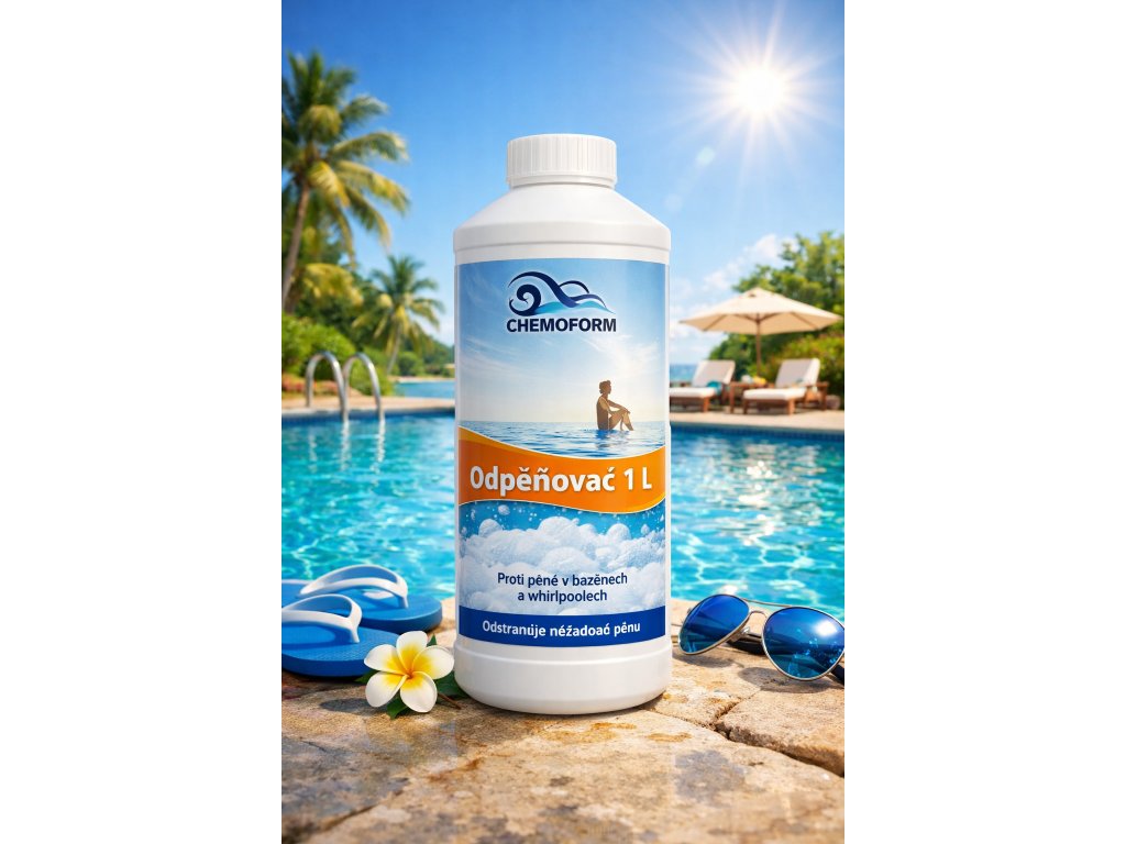 Odpěňovač od společnosti Chemoform je vysoce účinný přípravek určený k rychlému odstranění nežádoucí pěny z bazénové vody a vířivek.