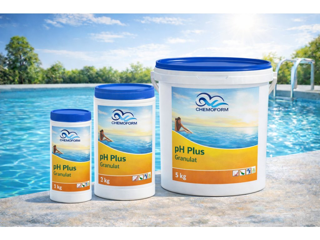 pH Plus granulát je přípravek určený ke zvýšení pH bazénové vody a stabilizaci chemické rovnováhy.