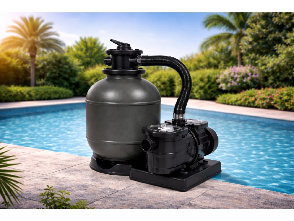 Kompletní filtrační systém pro bazény s integrovaným čerpadlem, určený pro střední a větší rodinné bazény.