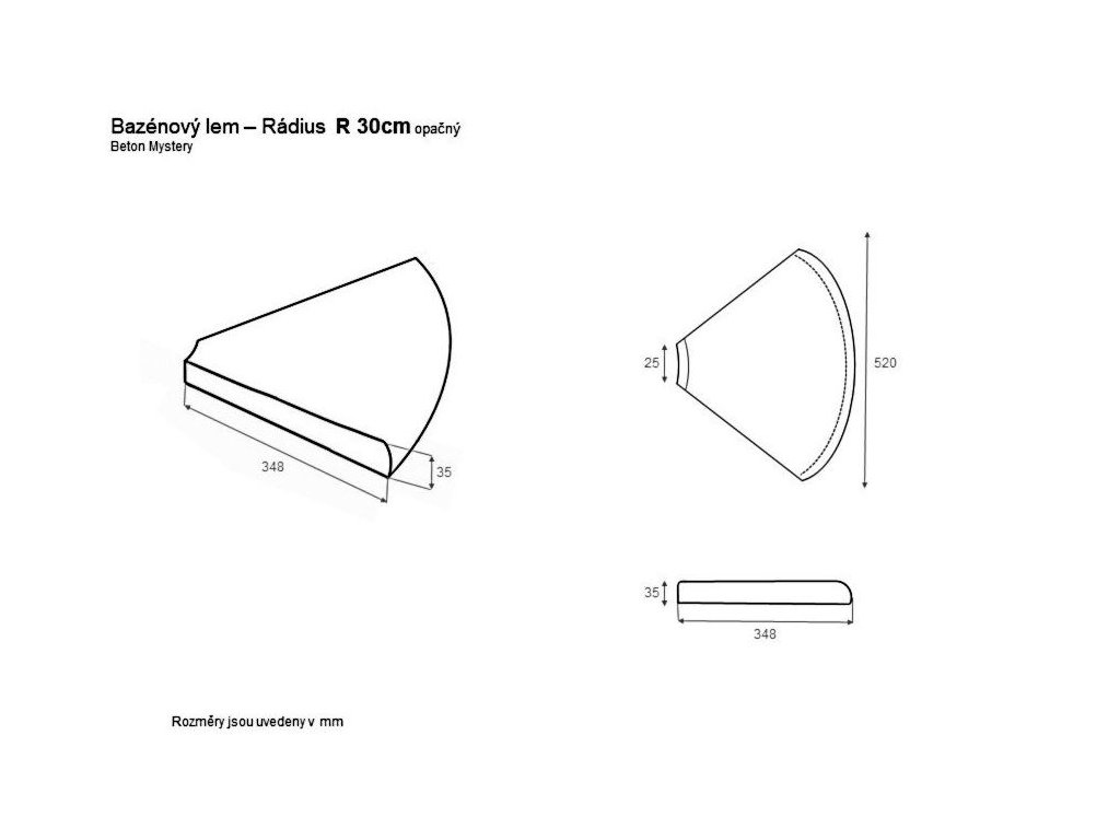 Rádius opačný – beton Mystery slouží k obložení (estetickému zakončení) vrchní hrany bazénu.
