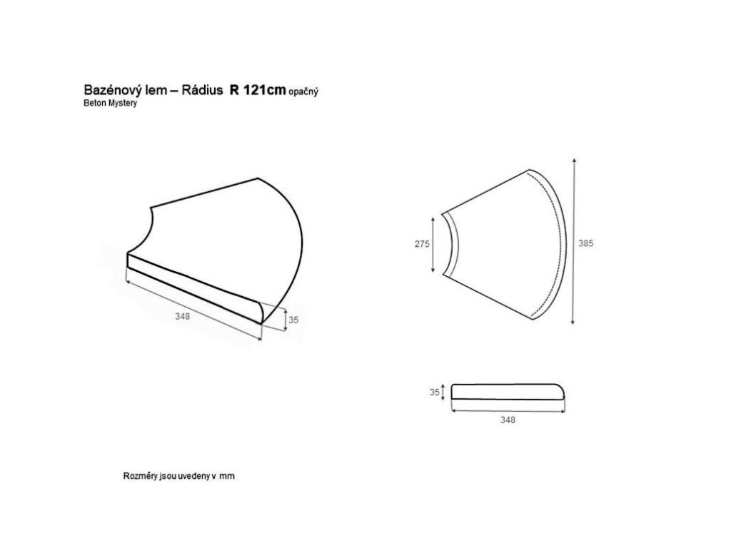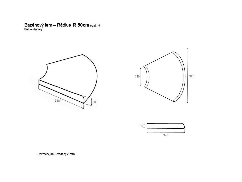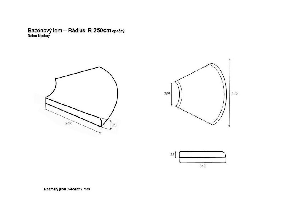 Rádius opačný – beton Mystery slouží k obložení (estetickému zakončení) vrchní hrany bazénu.