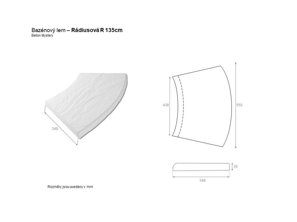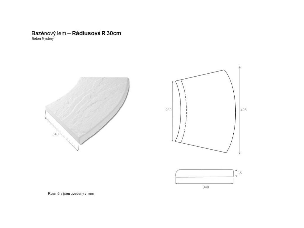 Rádius vnitřní – beton Mystery slouží k obložení (estetickému zakončení) vrchní hrany bazénu.