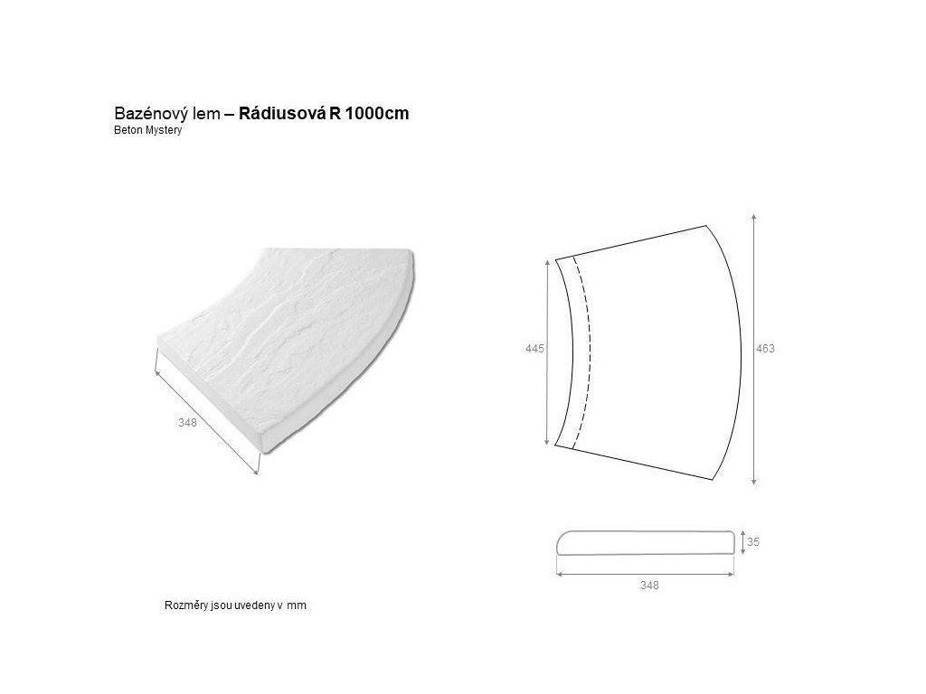 Rádius vnitřní – beton Mystery slouží k obložení (estetickému zakončení) vrchní hrany bazénu.