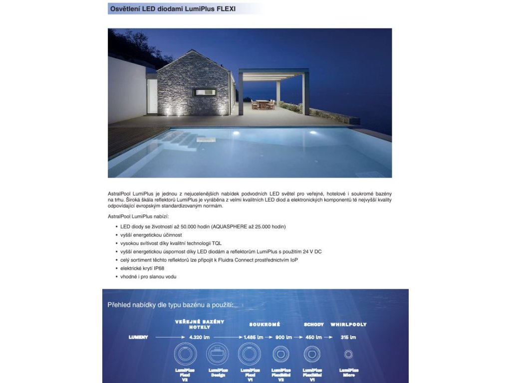 Je kompatibilní se všemi dostupnými ovládacími systémy pro LED reflektory značky AstralPool. Lampy jsou dodávány s odnímatelným kabelem o délce 2,5 m.