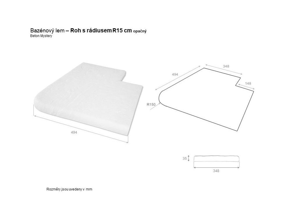 Roh s rádiusem R15 cm opačný – beton Mystery slouží k obložení (estetickému zakončení) vrchní hrany bazénu.