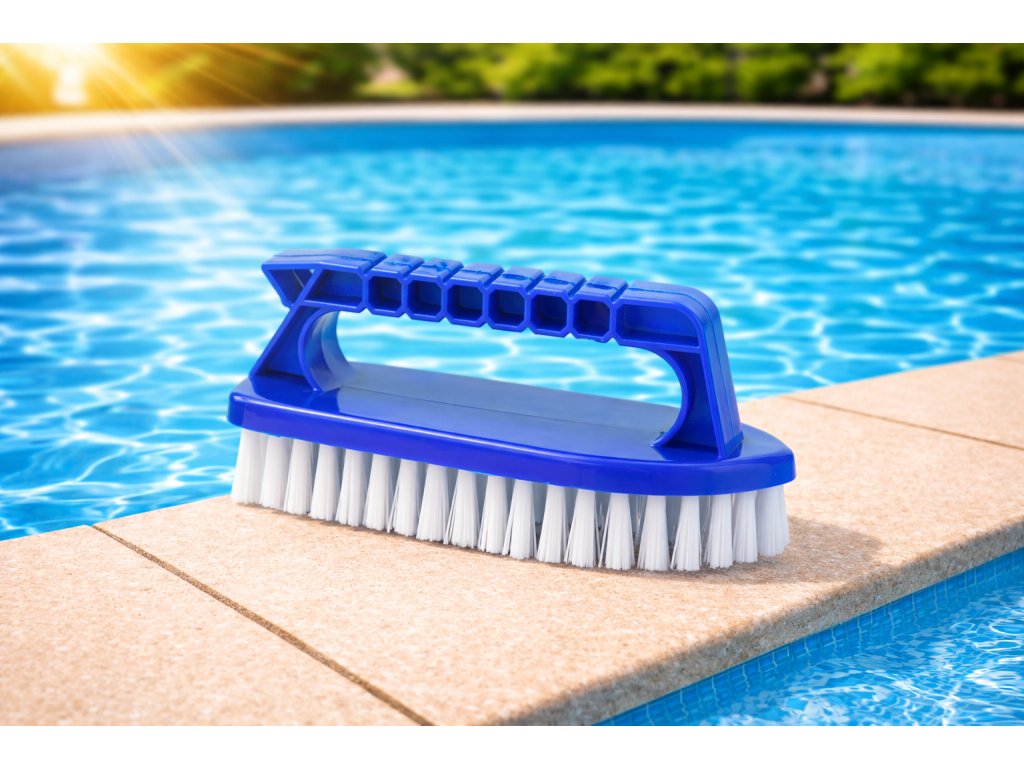Držák kartáče z bílého polypropylenu, vlastní kartáč z polypropylenu černého. Vhodný pro čištění hladinové linky bazénu.