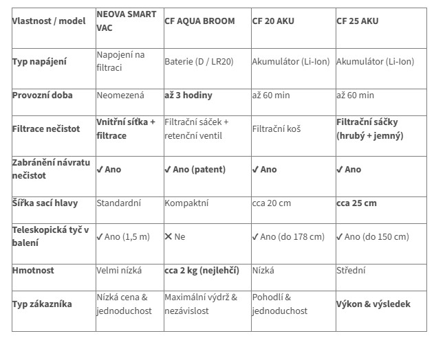 Srovnání ručních bazénových vysavačů