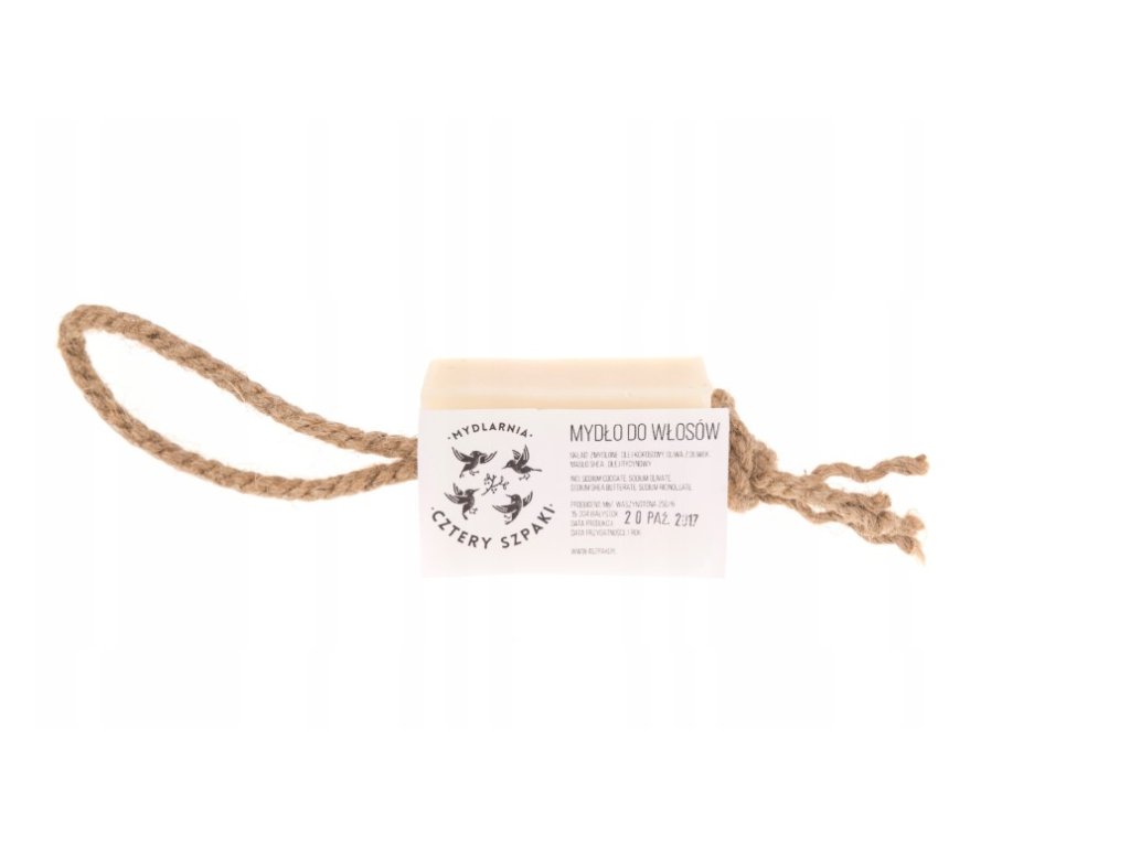 Mytí vlasů tímto mýdlem je čistá radost – pěna je hustá, bohatá a krémová. Velmi doporučujeme. Šňůrka s poutkem vám umožní zavěsit mýdlo pod sprchou a pomůže vám dobře uchopit kostku.