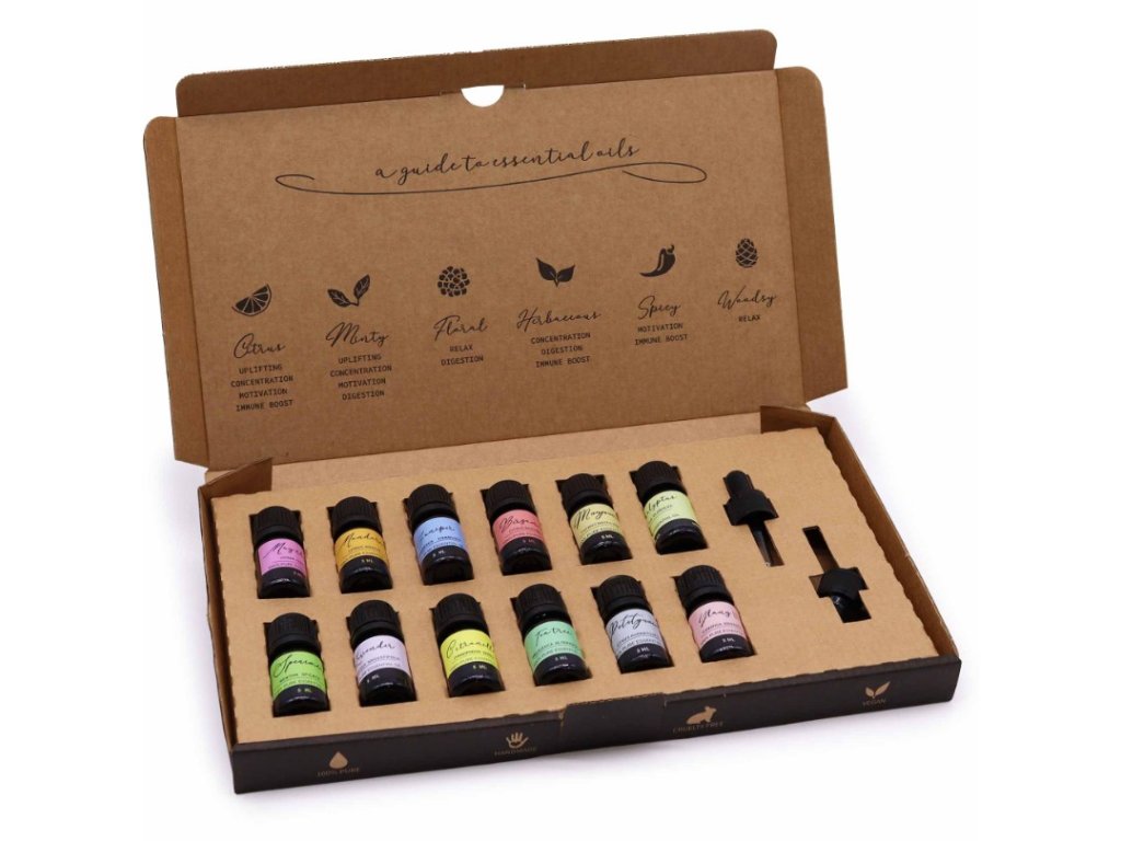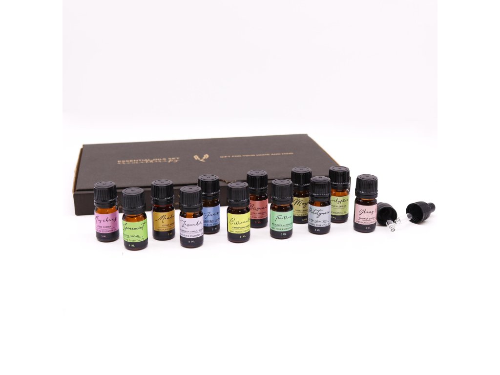 Ancient Wisdom Set Esenciálních Olejů je úžasným dárkem pro domácnost a mysl. Tento set obsahuje 12 esenciálních olejů (5ml) a dvě kapátka. Náš Set Esenciálních Olejů kombinuje variaci květinových, mátových, dřevitých, kořeněných a bylinných vůní.
