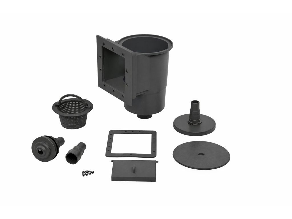 Součástí balení skimmeru jsou vratná tryska (pro otvor 60 mm a připojení bazénové hadice 32/38 mm), sběrný košík, plovoucí klapka proti návratu nečistot do bazénu a víko s hubicí pro připojení ručních a poloautomatických vysavačů.