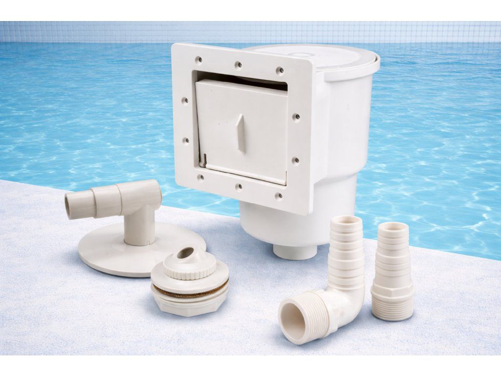 Součástí balení skimmeru jsou vratná tryska (pro otvor 60 mm a připojení bazénové hadice 32/38 mm), sběrný košík, plovoucí klapka proti návratu nečistot do bazénu a víko s adaptérem pro připojení ručních a poloautomatických vysavačů.