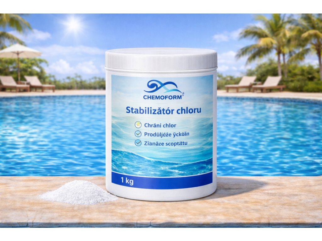 Stabilizátor chloru od společnosti Chemoform je přípravek určený k ochraně chloru v bazénové vodě před rychlým rozkladem vlivem UV záření.