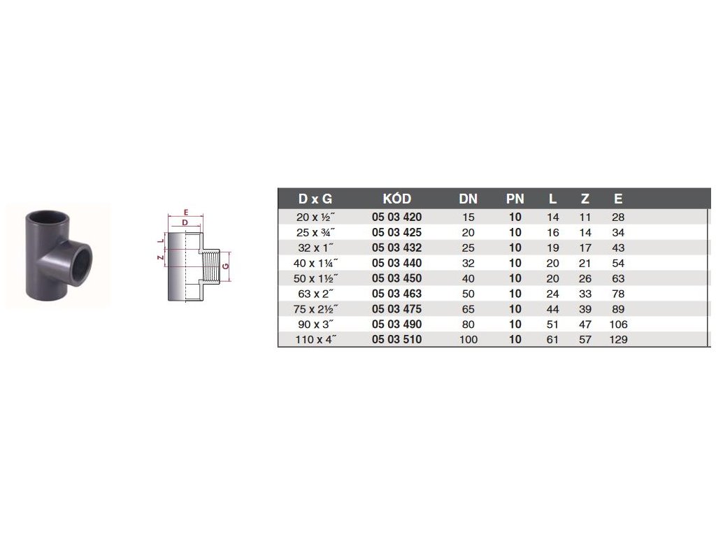 Tlakový T-KUS d20 je určená na dvou stranách k napojení na tlakové potrubí nebo tlakové hadice d20 a k napojení na vnitřní závit 1/2".
