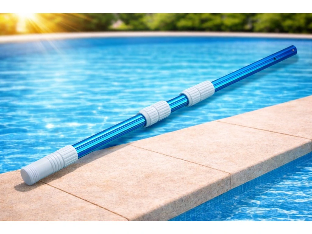Teleskopická tyč slouží jako univerzální držák pro bazénové příslušenství. Umožňuje připojit například hladinové nebo dnové síťky, kartáče a ruční bazénové vysavače. Nastavitelná délka pomáhá dosáhnout i do vzdálenějších míst bazénu a usnadňuje pravidelnou údržbu.