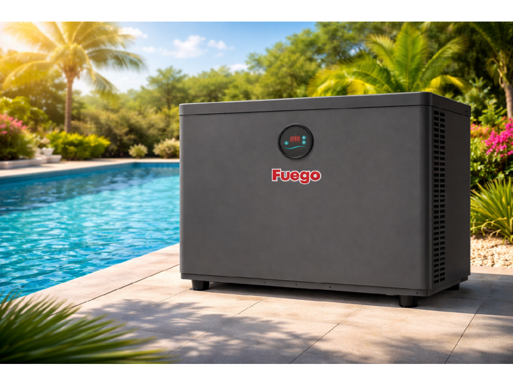 Bazénové tepelné čerpadlo s patentovanou technologií, které je určené pro nadzemní bazény a vířivky. Díky revoluční konstrukci vzduchového proudu uvnitř tepelného čerpadla má velmi tichý chod (46 dB – podobné jako lednice). Oproti klasickému tepelnému čerpadlu nemá ventilátor s vyústěním dopředu, proto není náročné na prostor a stačí pouze 0,5m okolo. Díky použitému chladivu R32 je tepelné čerpadlo FUEGO šetrnější k životnímu prostředí.