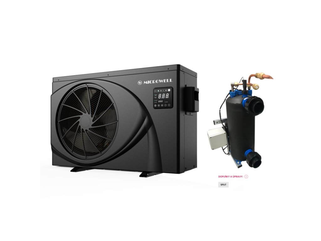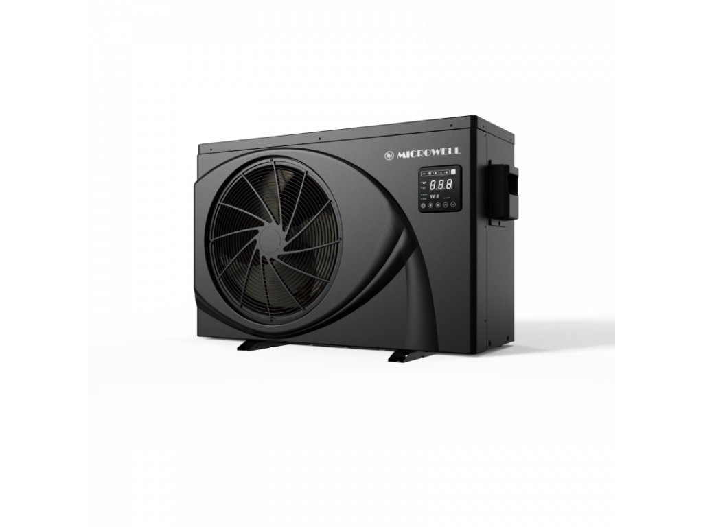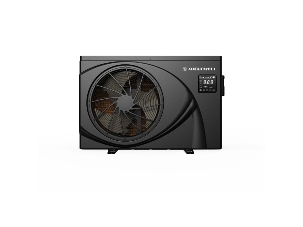 Tepelné čerpadlo MICROWELL HP BLACK Inverter má černý ABS kryt, plně invertorový kompresor a ventilátor, funkci topení i chlazení s rychlým odmrazováním a provozem až do -7°C.