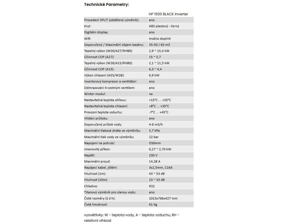 Tepelné bazénové čerpadlo HP 1500 BLACK INVERTER 15,4KW Sezónní - 15,4 kW / 35-50 m3