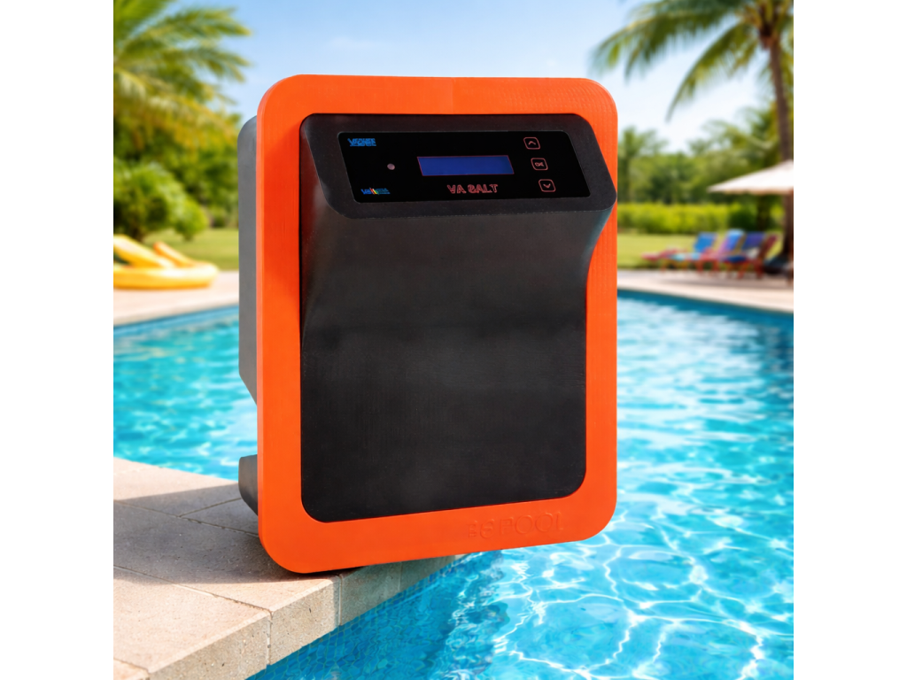 - Produkuje chlór přímo ze soli → komfortní voda bez klasického dávkování chemie